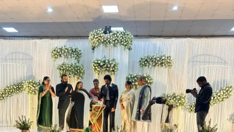 ಬಹುಭಾಷ ನಟಿ ರಶ್ಮಿಕಾ ಮಂದಣ್ಣ ಮತ್ತು ವಿಜಯ್ ದೇವರಕೊಂಡ ಜೋಡಿಯು ಕೊಡಗಿನ ವಿರಾಜಪೇಟೆಯಲ್ಲಿ ಅದ್ಧೂರಿ ಆರತಕ್ಷತೆ ಸಮಾರಂಭವನ್ನು ಆಯೋಜಿಸಿದೆ. ರಾಜಸ್ಥಾನದಲ್ಲಿ ನಡೆದ ಖಾಸಗಿ ವಿವಾಹದ ನಂತರ, ಮಂದಣ್ಣ ಕುಟುಂಬದ ಆಪ್ತರಿಗಾಗಿ ಕೊಡವ ಸಂಪ್ರದಾಯದೊಂದಿಗೆ ಈ ವಿಶೇಷ ರಿಸೆಪ್ಷನ್ ನಡೆಸಲಾಯಿತು. ವಿರಾಜಪೇಟೆಯ ಸುಂದರ ಪರಿಸರದಲ್ಲಿರುವ ‘ಸಿರಿನಿಟಿ ಹಾಲ್’ ನಲ್ಲಿ ಈ ತಾರಾ ಜೋಡಿಯ ರಿಸೆಪ್ಷನ್ಗೆ ಸಾಕ್ಷಿಯಾಗಿದೆ. ಕೊಡವ ಸಂಪ್ರದಾಯದ ಕೆಲವು ಮೆರುಗುಗಳೊಂದಿಗೆ ಈ ಸಮಾರಂಭ ನಡೆದಿದ್ದು, ಮಂದಣ್ಣ ಕುಟುಂಬಸ್ಥರು ತಮ್ಮ ಮನೆಮಗಳ ಮದುವೆಯ ಸಂಭ್ರಮವನ್ನು ಸಡಗರದಿಂದ ಆಚರಿಸಿದ್ದಾರೆ. ಸಭಾಂಗಣದ ಸುತ್ತಮುತ್ತ ಬಿಗಿ ಭದ್ರತೆ ಏರ್ಪಡಿಸಲಾಗಿದ್ದು, ಕೇವಲ ಆಹ್ವಾನಿತರಿಗೆ ಮಾತ್ರ ಪ್ರವೇಶ ನೀಡಲಾಗಿತ್ತು.