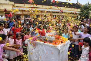 Mangaluru | ಸಂತ ವಿನ್ಸೆಂಟ್ ಪಾವ್ಲ್ ಪ್ರಾದೇಶಿಕ ಸಿಟಿ ವಲಯದ ಸಾಮಾನ್ಯ ಸಭೆ: ಆಧ್ಯಾತ್ಮಿಕ ಸಮಾಲೋಚನೆ ಮಂಗಳೂರು(reporter Karnataka.com): ಸಮಾಜ ಸೇವಾ ಸಂಘಟನೆ ಸಂತ ವಿನ್ಸೆಂಟ್ ಪಾವ್ಲ್ ಸಭಾ ಇದರ ಮಂಗಳೂರು ಪ್ರಾದೇಶಿಕ ಸಿಟಿ ವಲಯದ ವಾರ್ಷಿಕ ಸಾಮಾನ್ಯ ಸಭೆ ಹಾಗೂ ಆಧ್ಯಾತ್ಮಿಕ ಸಮಾಲೋಚನೆಯು ನಗರದ ದೇರೆಬೈಲ್ ಚರ್ಚ್ ಸಭಾಂಗಣದಲ್ಲಿ ನಡೆಯಿತು. ಸುಖ ಜೀವನವನ್ನು ದಾನ ಹಾಗೂ ಧರ್ಮದ ಮೂಲಕ ನಡೆಸ ಬಹುದು ಎಂಬ ಧ... ಮೊಂತಿ ಹಬ್ಬ: ಮಂಗಳೂರು ಬಿಷಪ್ ಡಾ. ಪೀಟರ್ ಪಾವ್ಲ್ ಸಲ್ದಾನ್ಹಾ ಸಂದೇಶ ಮಂಗಳೂರು(reporterkarnataka.com): ಮೊಂತಿ ಹಬ್ಬದ ಪ್ರಯುಕ್ತ ಮಂಗಳೂರು ಧರ್ಮಪ್ರಾಂತ್ಯದ ಬಿಷಪ್ ಅತೀ ವಂದನೀಯ ಡಾ. ಪೀಟರ್ ಪಾವ್ಲ್ ಸಲ್ದಾನ್ಹಾ ಅವರು ನಾಡಿನ ಜನತೆಗೆ ಸಂದೇಶ ನೀಡಿದ್ದಾರೆ. ಸಪ್ಟೆಂಬರ್ 8 ಮೇರಿ ಮಾತೆಯ ಜನನದ ಹಬ್ಬದ ದಿನವಾಗಿದೆ. ಇದು ನಮ್ಮ ಮಾತೆಯ ದಿನ. ನಮಗೆ ಸಂತಸ,ಸಡಗರ, ಸಂಭ್ರಮದ ದ... ತೀರ್ಥಹಳ್ಳಿಯ ಗಾಂಧಿ ಚೌಕದಲ್ಲಿ ಗಣಪದ್ವಯರ ಸಮಾಗಮ!: ಜನಸಾಗರಕ್ಕೆ ಪಟ್ಟಣ ಸಂಪೂರ್ಣ ಸ್ತಬ್ದ..! ರಶ್ಮಿ ಶ್ರೀಕಾಂತ್ ನಾಯಕ್ info.reporterkarnataka@gmail.com ಗಣೇಶೋತ್ಸವದ ಹನ್ನೊಂದನೆ ದಿನವಾದ ಶನಿವಾರ ತೀರ್ಥಹಳ್ಳಿಯ ಎರಡು ಅತೀ ದೊಡ್ಡ ಗಣಪತಿಗಳ ವಿಸರ್ಜನಾ ಮೆರವಣಿಗೆ ಅತ್ಯಂತ ವೈಭವದಿಂದ, ವಿಜೃಂಭಣೆಯಿಂದ ನೆರವೇರಿತು. ಎರಡು ಗಣಪತಿಗಳ ಸಮಾಗಮದಲ್ಲಿ ಸೇರಿದ್ದ ಸಾವಿರಾರು ಜನರನ್ನು ನೋಡಿ ಒಂದ... Chikkamagaluru | ವಿವಿಧ ಚರ್ಚುಗಳಲ್ಲಿ ಮಾತೆ ಮರಿಯಮ್ಮನವರ ಹಬ್ಬಕ್ಕೆ ನೋವೆನಾ ಪ್ರಾರ್ಥನೆ ಸಂತೋಷ್ ಅತ್ತಿಗೆರೆ ಚಿಕ್ಕಮಗಳೂರು info.reporterkarnataka@gmail.com ಸೆಪ್ಟೆಂಬರ್ 8ರಂದು ನಡೆಯಲಿರುವ ಮಾತೆ ಮರಿಯಮ್ಮನವರ ಹಬ್ಬ(ಹೊಸಕ್ಕಿ ಹಬ್ಬ)ಕ್ಕೆ ಮೂಡಿಗೆರೆ ತಾಲ್ಲೂಕಿನಾದ್ಯಂತ ವಿವಿಧ ಚರ್ಚುಗಳು ಒಂಬತ್ತು ದಿನಗಳ ನೊವೇನಾ ಪ್ರಾರ್ಥನೆ ಆರಂಭವಾಗಿದೆ. ಮೂಡಿಗೆ... ಆಂಗ್ಲರ ಅಂಧಾನುಕರಣೆ ತೊರೆದು ನಮ್ಮತನ ಉಳಿಸಿಕೊಳ್ಳೋಣ: ರಾಘವೇಶ್ವರ ಭಾರತೀ ಸ್ವಾಮೀಜಿ ಗೋಕರ್ಣ(reporterkarnataka.com): ನಮ್ಮ ಹಿರಿಯರು ಬಳಸುತ್ತಿದ್ದ ಪದಗಳನ್ನು ಮತ್ತೆ ಬಳಕೆಗೆ ತರುವ ಮೂಲಕ ನಾವು ನಾವಾಗೋಣ; ಆಂಗ್ಲರ ಅಂಧಾನುಕರಣೆ ತೊರೆದು ನಮ್ಮತನವನ್ನು ಉಳಿಸಿಕೊಳ್ಳೋಣ ಎಂದು ಶ್ರೀಮಜ್ಜಗದ್ಗುರು ಶಂಕರಾಚಾರ್ಯ ಶ್ರೀ ರಾಘವೇಶ್ವರ ಭಾರತೀ ಮಹಾಸ್ವಾಮೀಜಿ ಕರೆ ನೀಡಿದರು. ಅಶೋಕೆಯಲ್ಲಿ ಸ್ವಭಾ... Kodagu | ಶ್ರೀ ಗಣೇಶ ಸೇವಾ ಸಮಿತಿಯಿಂದ ವೈಭವದ ಗಣೇಶೋತ್ಸವ: ಮೇಕೇರಿಯಲ್ಲಿ ಗಮನಸೆಳೆದ ಭಜನೆ ಕುಣಿತ ಮಡಿಕೇರಿ(reporterkarnataka.com): ಇಲ್ಲಿಗೆ ಸಮೀಪದ ಮೇಕೇರಿ ಗ್ರಾಮದ ಶ್ರೀ ಗೌರೀಶಂಕರ ದೇವಾಲಯದಲ್ಲಿ ಶ್ರೀ ಗಣೇಶ ಸೇವಾ ಸಮಿತಿ ಆಶ್ರಯದಲ್ಲಿ ಪ್ರತಿಷ್ಠಾಪಿಸಲ್ಪಟ್ಟ ಗಣೇಶನ ಶೋಭಾಯಾತ್ರೆಯಲ್ಲಿ ಪುತ್ತೂರಿನ ಭಜನಾ ತಂಡದಿಂದ ನೃತ್ಯ ಭಜನೆ ಗಮನ ಸೆಳೆಯಿತು. ಆಗಸ್ಟ್ 27ರಂದು ಗಣೇಶನ ಉತ್ಸವ ಮೂರ್ತಿಯನ್ನ... ಮೊಂತಿ ಹಬ್ಬ: ಮಂಗಳೂರು ಕ್ರೈಸ್ತ ಧರ್ಮಪ್ರಾಂತ್ಯದ ಎಲ್ಲ ಚರ್ಚ್ ಗಳಲ್ಲಿ ನವದಿನಗಳ ನೊವೆನಾಗಳಿಗೆ ಚಾಲನೆ ಮಂಗಳೂರು(reporterkarnataka.com): ಮೊಂತಿಹಬ್ಬ(ಕನ್ಯಾ ಮರಿಯಮ್ಮ ಹಬ್ಬ)ದ ಅಂಗವಾಗಿ ನವದಿನಗಳ ಪ್ರಾರ್ಥನಾ ವಿಧಿಗಳಿಗೆ ಮಂಗಳೂರು ಕ್ರೈಸ್ತ ಧರ್ಮಪ್ರಾಂತ್ಯದ ಎಲ್ಲ ಚರ್ಚ್ ಗಳಲ್ಲಿ ಶನಿವಾರ ಚಾಲನೆ ನೀಡಲಾಯಿತು. ನವ ದಿನಗಳ ಪ್ರಾರ್ಥನಾವಿಧಿ ಮುಗಿದ ಬಳಿ... ಬಂಟರ ಸಂಘದ ಗಣೇಶೋತ್ಸವ ಸಮಾಜಕ್ಕೆ ಮಾದರಿ: ಜಿಲ್ಲಾಧಿಕಾರಿ ದರ್ಶನ್ ಎಚ್.ವಿ. *ಬಂಟ್ಸ್ ಹಾಸ್ಟೆಲ್ ಗಣೇಶೋತ್ಸವ ಎರಡನೇ ದಿನದ ಧಾರ್ಮಿಕ ಸಭೆ* ಮಂಗಳೂರು(reporterkarnataka.com): ಬಂಟ್ಸ್ ಹಾಸ್ಟೆಲ್ ಸಾರ್ವಜನಿಕ ಗಣೇಶೋ