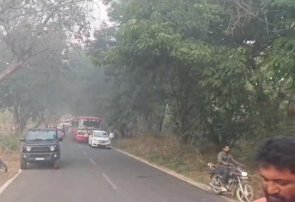 ರಸ್ತೆ ಬದಿ ಮೂರು ಹುಲಿಗಳು ಸಂಚರಿಸುತ್ತಿರುವುದನ್ನು ಅಲ್ಲಿನ ಗ್ರಾಮಸ್ಥರು ನೋಡಿದ್ದಾಗಿದ್ದು ಒಂದು ಹುಲಿ ಹಸುವಿನ ಮೇಲೆ ದಾಳಿ ನಡೆಸಿ ರಸ್ತೆ ಬದಿಯಲ್ಲಿ ಕೊಂದು ಹಾಕಿದೆ. ಆಕ್ರೋಶಭರಿತ ಗ್ರಾಮಸ್ಥರು ರಸ್ತೆ ಮಧ್ಯದಲ್ಲಿ ಟಯರಿಗೆ ಬೆಂಕಿ ಹಚ್ಚಿ ಪ್ರತಿಭಟನೆ ನಡೆಸಿದ್ದಾರೆ.