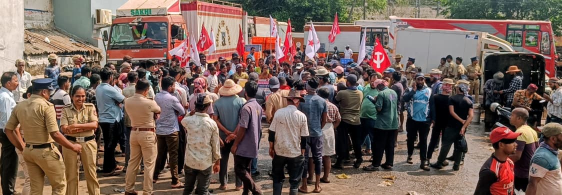 ದಕ್ಕೆ ಕಾರ್ಮಿಕ ಮುರುಗನ್ ಸಾವು: ನ್ಯಾಯಕ್ಕಾಗಿ ಹಾಗೂ 25 ಲಕ್ಷ ರೂ. ಪರಿಹಾರಕ್ಕಾಗಿ ಒತ್ತಾಯಿಸಿ ಪ್ರತಿಭಟನೆ