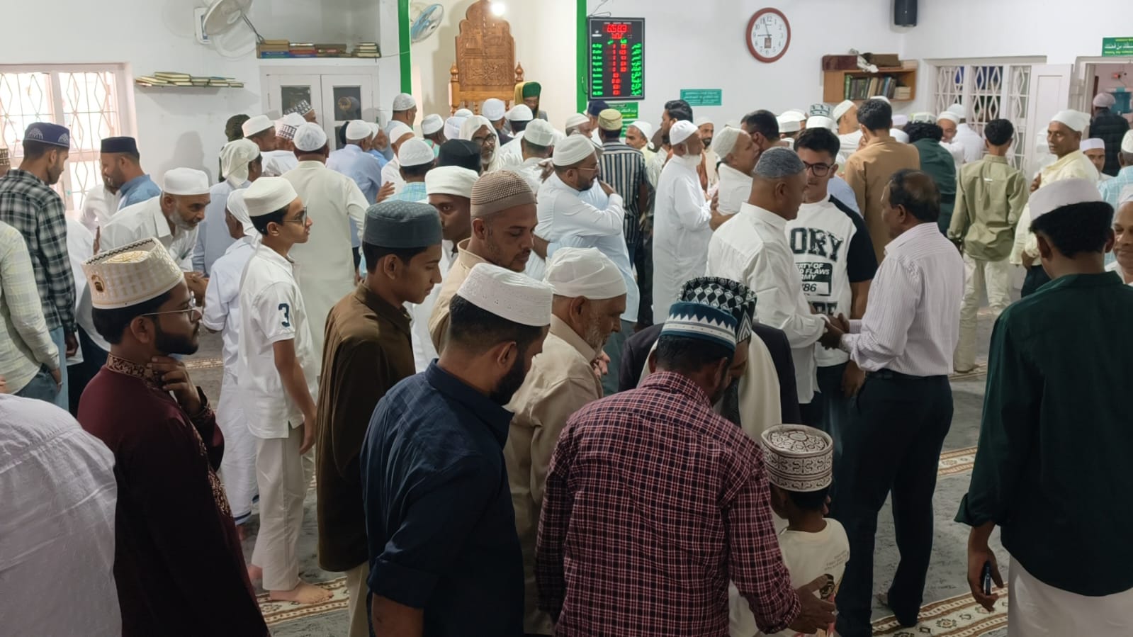 ನಮಾಜ಼್ ನ ನಂತರ ಪರಸ್ಪರ ಈದ್ ನ ಶುಭಾಶಯ ಹಂಚಿಕೊಂಡಿದರು.