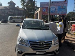 ಆಂಧ್ರ ಪ್ರದೇಶ ನೋಂದಣಿಯ ಕಾರಿನಲ್ಲಿ ಯುವಕರ ಗುಂಪು ಕಾರಿನ ಮುಂಭಾಗದ ಗ್ಲಾಸ್ ಮೇಲೆ ಪೊಲೀಸ್ ಎಂದು ನಾಮಫಲಕ ಹಾಕಿಕೊಂಡು ಓಡಾಡುತ್ತಿರುವ ಬಗ್ಗೆ ಸ್ಥಳೀಯ ಆಟೋ ಚಾಲಕರು ಪೊಲೀಸರಿಗೆ ಮಾಹಿತಿ ನೀಡಿದ ಹಿನ್ನಲೆಯಲ್ಲಿ ಮಡಿಕೇರಿ ಟೌನ್ ಹಾಲ್ ಸರ್ಕಲ್ ನಲ್ಲಿ ವಾಹನ ಅಡ್ಡ ಗಟ್ಟಿ ನಾಲ್ವರ ವಿರುದ್ಧ ಪ್ರಕರಣ ದಾಖಲಿಸಿ ಕ್ರಮ ಕೈಗೊಳ್ಳಲಾಗಿದೆ.
