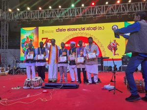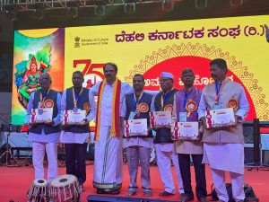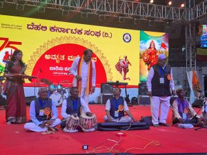ದೆಹಲಿಯ ಕರ್ನಾಟಕ ಸಂಘದ ಅಮೃತ ಮಹೋತ್ಸವದ, ಸಮಾರೋಪ ಸಮಾರಂಭದ ವೇದಿಕೆಯಲ್ಲಿ ಕಲಾ ಸಂಘದ ಸದಸ್ಯರು