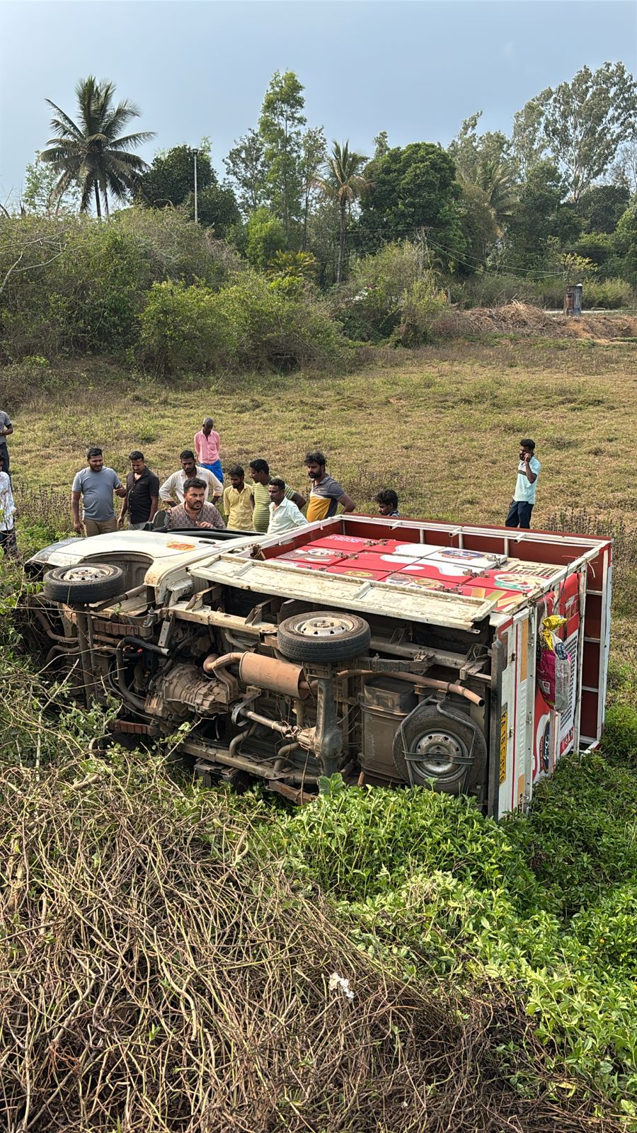 ಚಾಲಕನ ನಿಯಂತ್ರಣ ತಪ್ಪಿ ಐಸ್ ಕ್ರೀಮ್ ಪಿಕಪ್ ಪಲ್ಟಿ: ಅದೃಷ್ಟವಶಾತ್ ಚಾಲಕ ಪಾರು