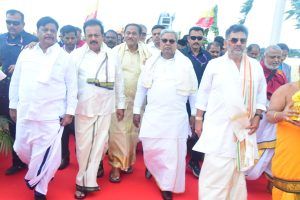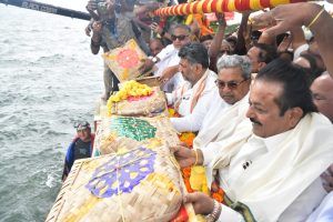 ಕಾವೇರಿ ತಾಯಿ, ಚಾಮುಂಡೇಶ್ವರಿ ಕೃಪಾಕಟಾಕ್ಷದಿಂದ ರಾಜ್ಯ ಸುಭಿಕ್ಷವಾಗಿದೆ. ಎಲ್ಲಾ ಜಲಾಶಯಗಳೂ ತುಂಬಿವೆ. ಎಲ್ಲಾ ನಾಲೆಗಳಿಗೂ ತಕ್ಷಣದಿಂದ ನೀರು ಹರಿಸಲು ವೇದಿಕೆಯಿಂದಲೇ ಆದೇಶ ನೀಡಿದರು.