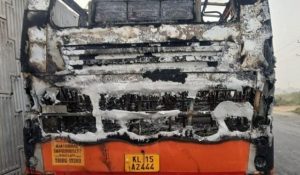 ಸುಟ್ಟು ಕರಕಲಾದ ಕೇರಳದ ಸರಕಾರಿ ಬಸ್; ಅದೃಷ್ಟವಶಾತ್ ಪ್ರಯಾಣಿಕರು ಪಾರು