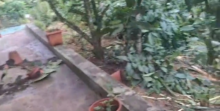 ವಿರಾಜಪೇಟೆ ತಾಲ್ಲೂಕಿನ ಕರಡಿ ಗೋಡುನಲ್ಲಿ ತೋಟದ ಮನೆಯ ಅಂಗಳದಲ್ಲಿ ಕಾಡಾನೆ ದಾoಧಲೆ ನಡೆಸಿ ಅಪಾರ ಪ್ರಮಾಣದ ನಷ್ಟ ಉಂಟು ಮಾಡಿದೆ. ಇಲ್ಲಿನ ಕುಕ್ಕನೂರು ಪುರುಷೋತ್ತಮ್, ದೇವ ಪ್ರಕಾಶ್ ಮತ್ತು ಸುನಿಲ್ ಎಂಬುವವರ ಮನೆಯ ಅಂಗಳದಲ್ಲಿದ್ದ ಹೂಕುಂಡಗಳು, ಕಾಫಿ, ಅಡಿಕೆ, ಪಪಾಯ ಗಿಡಗಳನ್ನು ಸಂಪೂರ್ಣ ಹಾನಿ ಮಾಡಿ ಉಂಟು ಮಾಡಿದೆ.