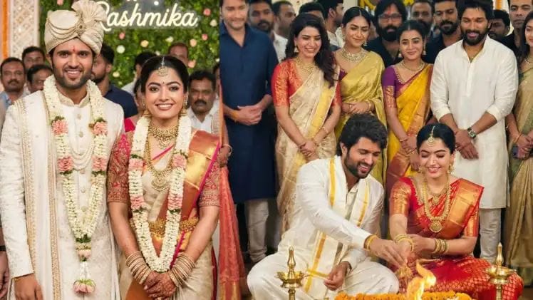 ಬ್ಯಾಚುಲರ್ ಲೈಫ್ಗೆ ಕೊಡಗಿನ ಬೆಡಗಿ ಗುಡ್ಬೈ: ರಶ್ಮಿಕಾ – ದೇವರಕೊಂಡ ದಂಪತಿಗೆ ಅಂಬಾನಿ, ಆಶಿಕಾ, ವಂಗಾ, ರಾಹುಲ್ ವಿಶ್