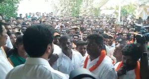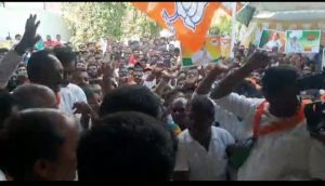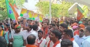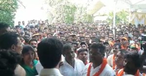 ಎಂ. ಪಿ. ಕುಮಾರಸ್ವಾಮಿ ಬೆಂಬಲಿಗರು ಶಾಸಕರ ಪೋಟೋ ಹಿಡಿದು ಬಲಪ್ರದರ್ಶನ ನಡೆಸಿದರು.