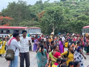 ಮಹಿಳೆಯರಿಗೆ ಉಚಿತ ಬಸ್ ಯಾನ ಬಳಿಕ ಮಲೆ ಮಹಾದೇಶ್ವರ ಸ್ವಾಮಿಗೆ ಬೇಡಿಕೆ ಇನ್ನಷ್ಟು ಜಾಸ್ತಿಯಾಗಿದೆ. ಮಹಿಳಾ ಯಾತ್ರಾರ್ಥಿಗಳ ಸಂಖ್ಯೆ ಬಹಳಷ್ಟು ಹೆಚ್ಚಾಗಿದೆ. ಬೆಟ್ಟವೇರುವ ಪ್ರತಿಯೊಂದು ಬಸ್ಸುಗಳು ಮಹಿಳಾ ಪ್ರಯಾಣಿಕರಿಂದ ತುಂಬಿ ತುಳುಕುತ್ತಿದೆ. ಸರಕಾರ ಉಚಿತ ಬಸ್ ಪ್ರಯಾಣವನ್ನೇನೊ ಮಹಿಳೆಯರಿಗೆ ಕಲ್ಪಿಸಿದೆ. ಆದರೆ ಬಸ್ಸಿನ ಸಂಖ್ಯೆಯನ್ನು ಹೆಚ್ಚಿಸಿಲ್ಲ ಎಂದು ಭಕ್ತಾಧಿಗಳು ಆಡಿಕೊಳ್ಳುತ್ತಿದ್ದಾರೆ. ಮಲೆ ಮಹದೇಶ್ವರ ಬೆಟ್ಟದಿಂದ ನಿರ್ಗಮಿಸಲು ಯಾತ್ರಿಕರು ಬಸ್ಸುಗಳಿಗೆ ಮುಗಿಬೀಳುತ್ತಾರೆ. ಕಿಟಕಿ ಮೂಲಕ ಬಸ್ಸೇರುವುದು, ಚಾಲಕನ ಸೀಟು ಬಳಿಯ ಡೋರ್ ಮೂಲಕ ಬಸ್ ಹತ್ತುವ ದೃಶ್ಯಗಳು ಸಾಮಾನ್ಯವಾಗಿದೆ. ಜಗಳ, ಕಾದಾಟ, ಬೈಗಳು ಕೂಡ ಪರಸ್ಪರ ವಿನಿಮಯವಾಗುತ್ತದೆ.
