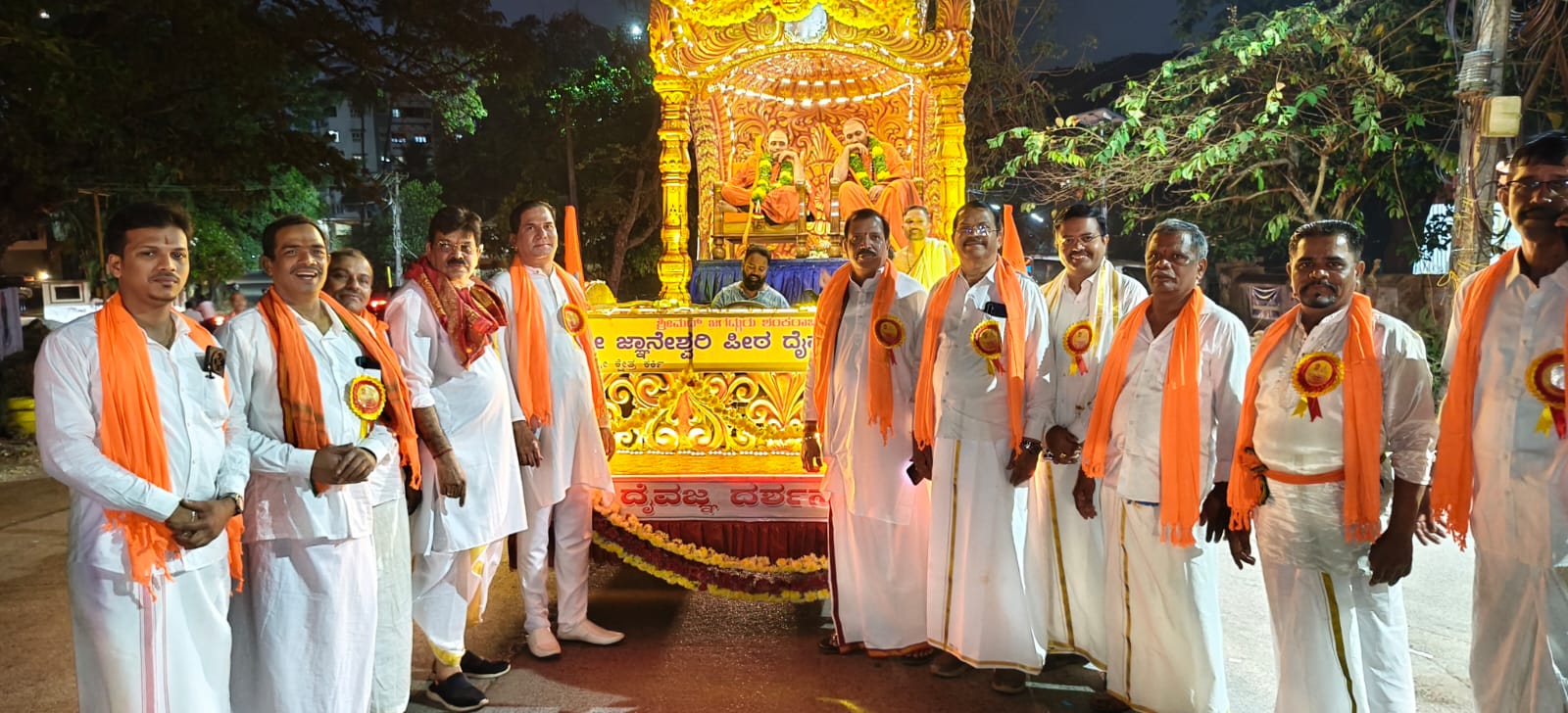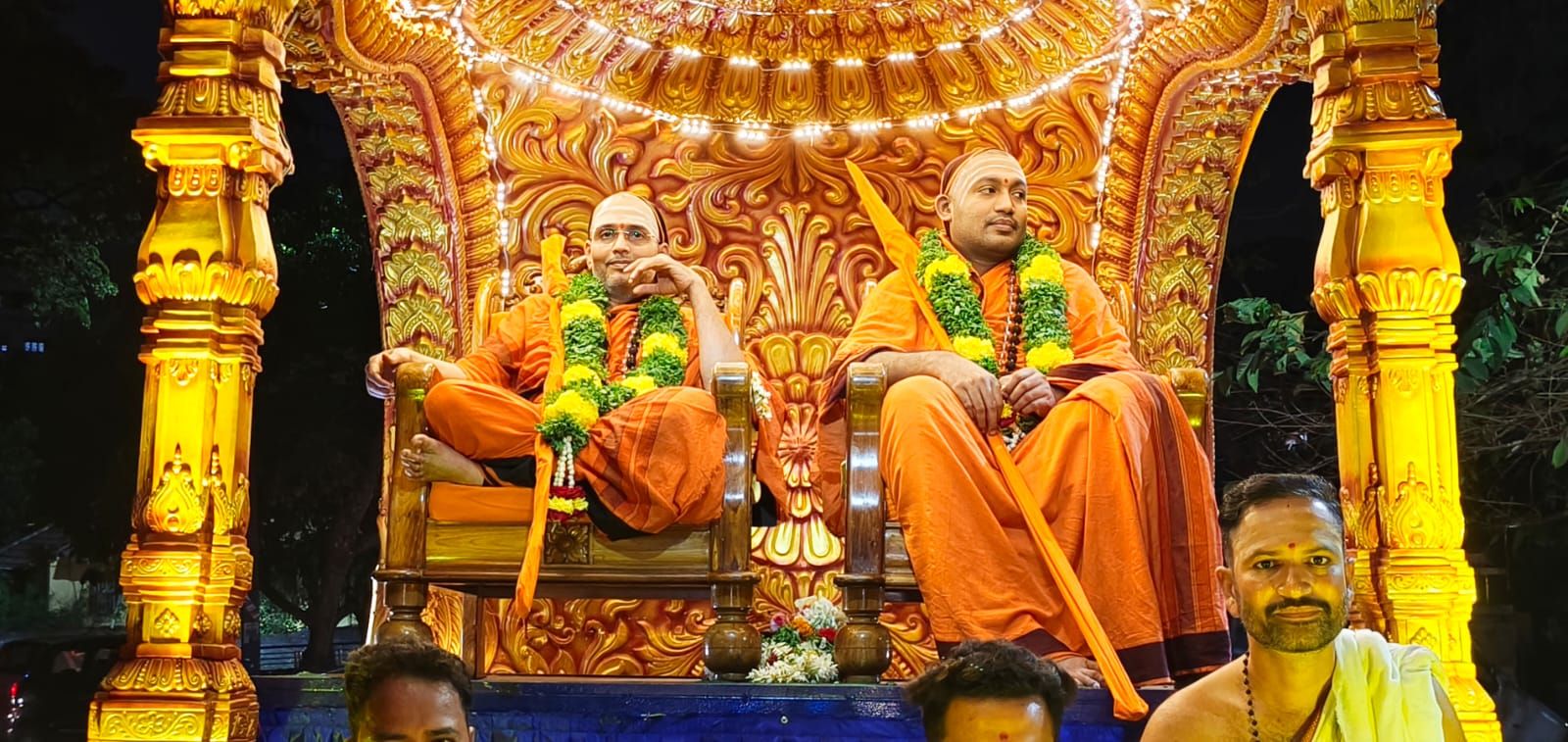ಉಭಯ ಶ್ರೀಗಳವರನ್ನು ನಗರದ ಮಣ್ಣಗುಡ್ಡೆಯಿಂದ ಅಶೋಕನಗರದ ದೈವಜ್ಞ ಕಲ್ಯಾಣ ಮಂಟಪದವರೆಗೆ ಮಂಗಳವಾದ್ಯ, ಭಜನಾ ನೃತ್ಯ, ಟ್ಯಾಬ್ಲೋ ಗಳ ಮೂಲಕ ಪೂರ್ಣ ಕುಂಭ ಸ್ವಾಗತ ದೊಂದಿಗೆ ಬರಮಾಡಿಕೊಳ್ಳಲಾಯಿತು.