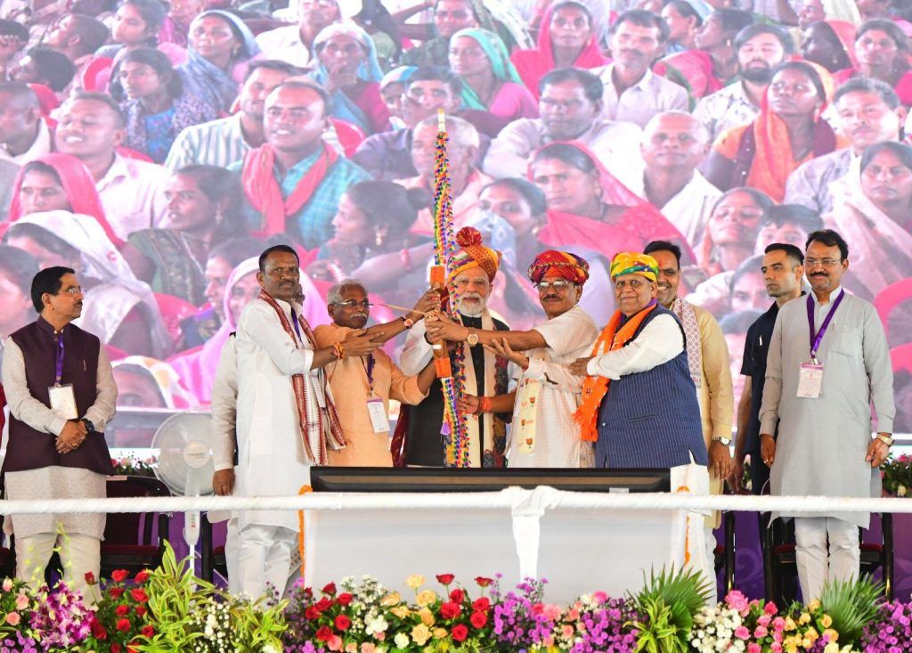 ಕೇಂದ್ರ ಹೊಸ ಮತ್ತು ನವೀಕರಿಸಬಹುದಾದ ಇಂಧನ ಸಚಿವ ಪ್ರಹ್ಲಾದ್ ಜೋಶಿ, ರಾಜಸ್ಥಾನ ರಾಜ್ಯಪಾಲ ಹರಿಭಾವು ಬಗಾಡೆ, ಸಿಎಂ ಭಜನ್ಲಾಲ್ ಶರ್ಮಾ ಮತ್ತಿತರರ ಸಮ್ಮುಖದಲ್ಲಿ ಪ್ರಧಾನಿ ನರೇಂದ್ರ ಮೋದಿ ಅವರು ಗುರುವಾರ ರಿಮೋಟ್ ಬಟನ್ ಒತ್ತುವ ಮೂಲಕ ಲಕ್ಷಕ್ಕೂ ಅಧಿಕ ಕೋಟಿ ವೆಚ್ಚದ ಅನೇಕಾನೇಕ ಅಭಿವೃದ್ಧಿ ಮತ್ತು ಮೂಲಸೌಕರ್ಯ ಯೋಜನೆಗಳಿಗೆ ಶಂಕುಸ್ಥಾಪನೆ ಹಾಗೂ ಉದ್ಘಾಟನೆ ನೆರವೇರಿಸಿ ದೇಶಾಭಿವೃದ್ಧಿಯ ಮತ್ತೊಂದು ಪರ್ವಕ್ಕೆ ನಾಂದಿ ಹಾಡಿದರು.
