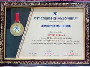 ಮಂಗಳೂರು(reporterkarnataka.com): ಮಂಗಳೂರಿನ ಸಿಟಿ ಕಾಲೇಜ್ ಆಫ್ ಫಿಸಿಯೋಥರಪಿ ವಿದ್ಯಾರ್ಥಿಯಾದ ಅರ್ಪಿತಾ ಡಿಸೋಜ ಅವರು ಪ್ರತಿಷ್ಠಿತ ರಾಜೀವ್ ಗಾಂಧಿ ವಿಶ್ವವಿದ್ಯಾಲಯ ಪರೀಕ್ಷೆಯಲ್ಲಿ ಮನೋವಿಜ್ಞಾನ ಮತ್ತು ಸಮಾಜ ಶಾಸ್ತ್ರ ವಿಷಯದಲ್ಲಿ 4ನೇ ರ್ಯಾಂಕ್ ಪಡೆದಿದ್ದಾರೆ.