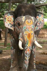 ಗಜಪಡೆಗೆ ನವಿಲು, ಗಂಡಬೇರುಂಡ ಹಾಗೂ ಬಳ್ಳಿಗಳ ಚಿತ್ತಾರಗಳನ್ನ ಬಿಡಿಸುತ್ತಿರುವ ಕಲಾವಿದರ ತಂಡವು, ಸೊಂಡಿಲು,ಕಣ್ಣು,ಕಿವಿ,ಕಾಲು ಗಳ ಮೇಲೆ ಆಕರ್ಷಕ ಚಿತ್ತಾರಗಳನ್ನ ಬಿಡಿಸುತ್ತಿದ್ದಾರೆ.