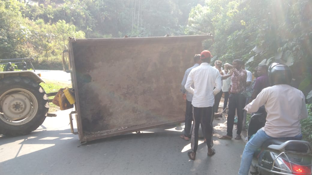ಕೊಟ್ಟಿಗೆಹಾರ-ಹೊರನಾಡು–ಶೃಂಗೇರಿ ರಸ್ತೆಯಲ್ಲಿ ಟ್ಯಾಕ್ಟರ್ ಪಲ್ಟಿ: ಅರ್ಧ ಗಂಟೆ ಸಂಚಾರ ಸ್ಥಗಿತ