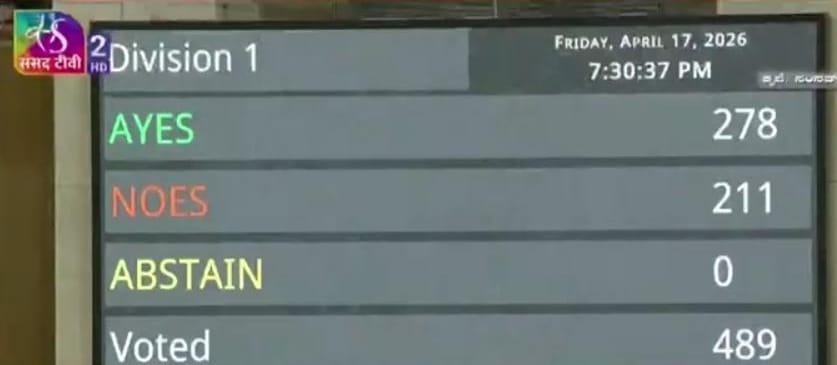 ಮತಗಳ ವಿಭಜನೆಯ ನಂತರ ಈ ಪ್ರಸ್ತಾವನೆಯನ್ನು ಸೋಲಿಸಲಾಯಿತು, 278 ಸದಸ್ಯರು ವಿರುದ್ಧವಾಗಿ ಮತ್ತು 211 ಸದಸ್ಯರು ಪರವಾಗಿ ಮತ ಚಲಾಯಿಸಿದರು. ಒಟ್ಟು 489 ಸಂಸದರು ಮತದಾನದಲ್ಲಿ ಭಾಗವಹಿಸಿದ್ದರು. ಕ್ಷೇತ್ರ ಪುನರ್ವಿಂಗಡಣೆಗಾಗಿ ಹೊಸ ಜನಗಣತಿಯ ಅಗತ್ಯವನ್ನು ತಪ್ಪಿಸುವ ಗುರಿಯನ್ನು ಮಸೂದೆ ಹೊಂದಿತ್ತು, ಇದು ಶಾಸಕಾಂಗಗಳಲ್ಲಿ ಮಹಿಳಾ ಕೋಟಾವನ್ನು ಜಾರಿಗೆ ತರುವ ಕೇಂದ್ರ ನಿಬಂಧನೆಯಾಗಿದೆ.